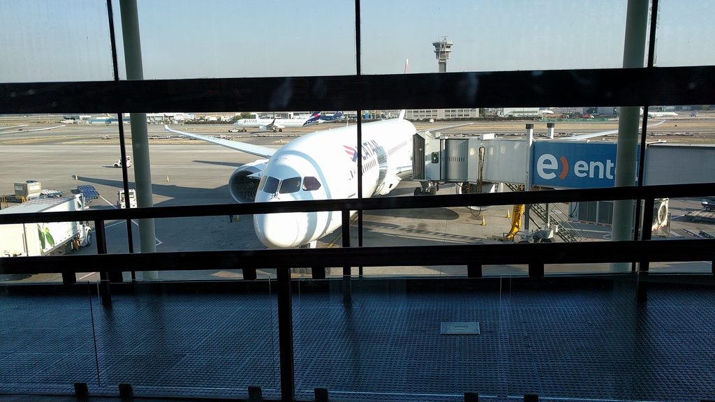 Obviamente se ven muchos aviones de LATAM, acá estaba este 787 esperando para salir.