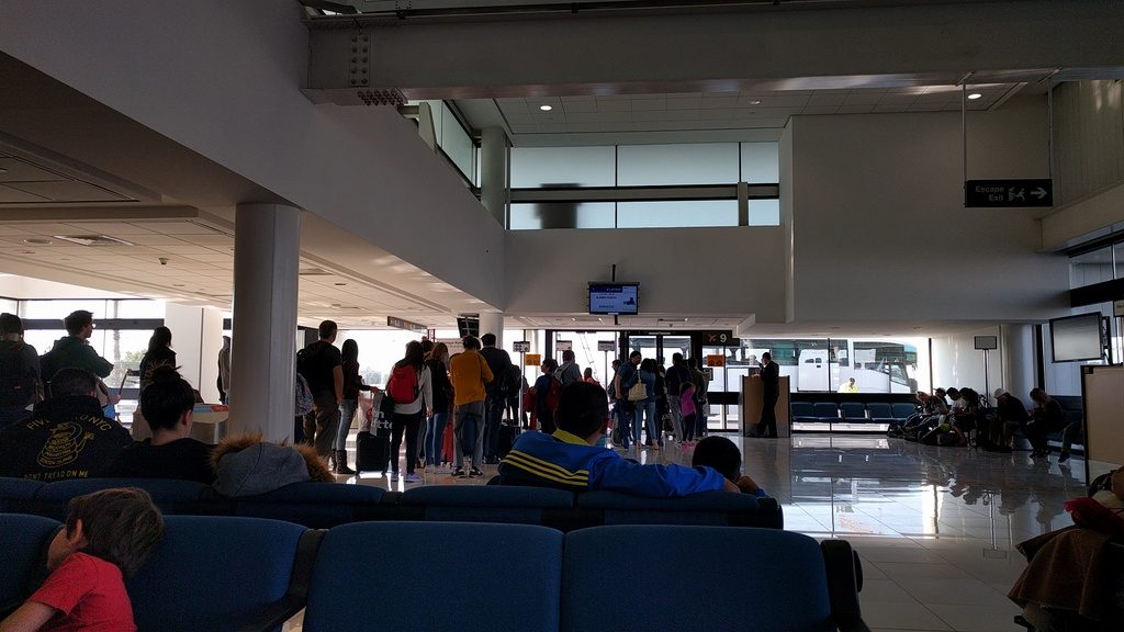 Lo bueno era que el espacio era grande, aunque la gente ya hacía cola para salir mucho antes de que anunciaran el embarque, que empezó un poco demorado.