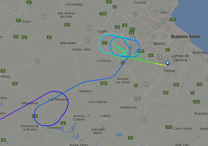 El vuelo llegó demorado casi una hora por cuestiones climáticas como muestra FlightRadar24. En un momento pensé que estábamos encarando para desviarnos a Rosario, aunque terminamos aterrizando en Ezieza.